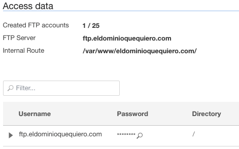 FileZilla is very easy to use. We only need the FTP connection data to configure it. To obtain this data, we must go to our customer area in MrDomain, in the hosting management area we will see the "FTP accounts" tab.