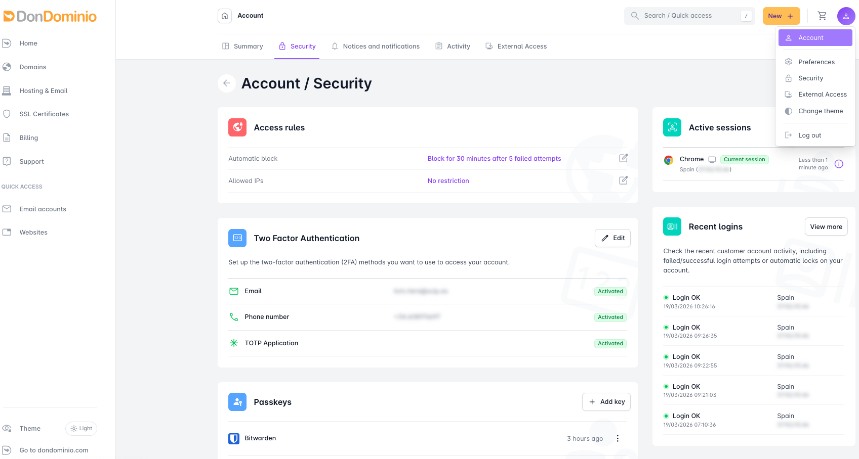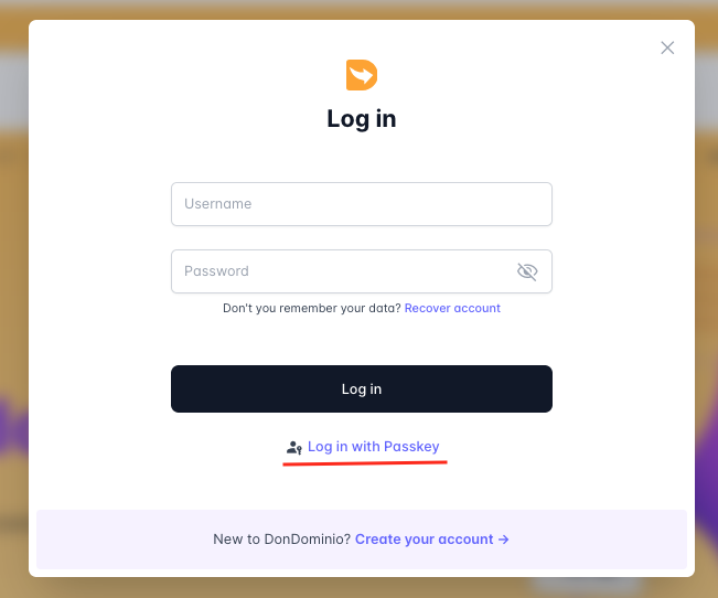 With these simple steps, we will have configured our access key and can use it to access DonDominio by selecting "Log in with passkey.