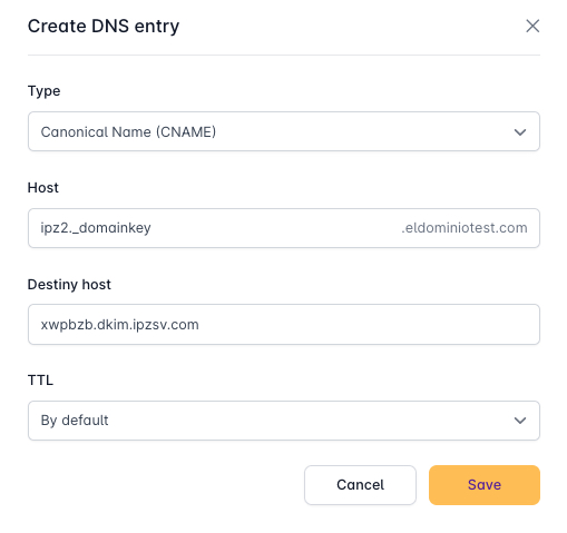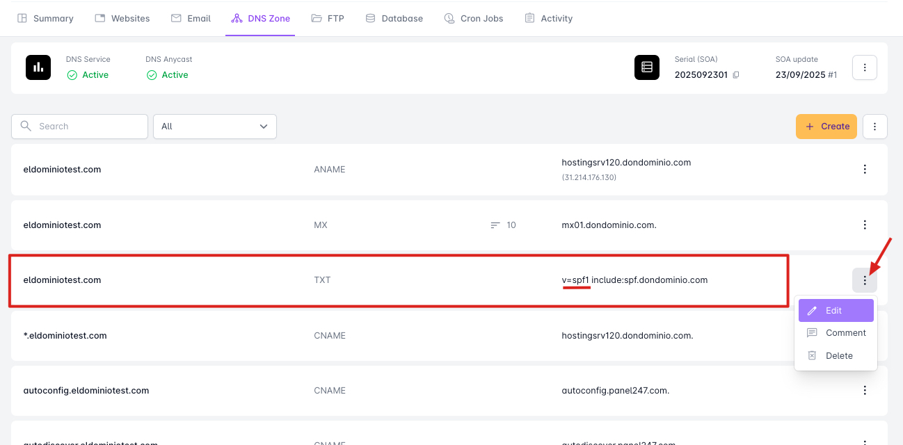 With these instructions, we must go back to our domain's DNS Zone and create/modify the records indicated.