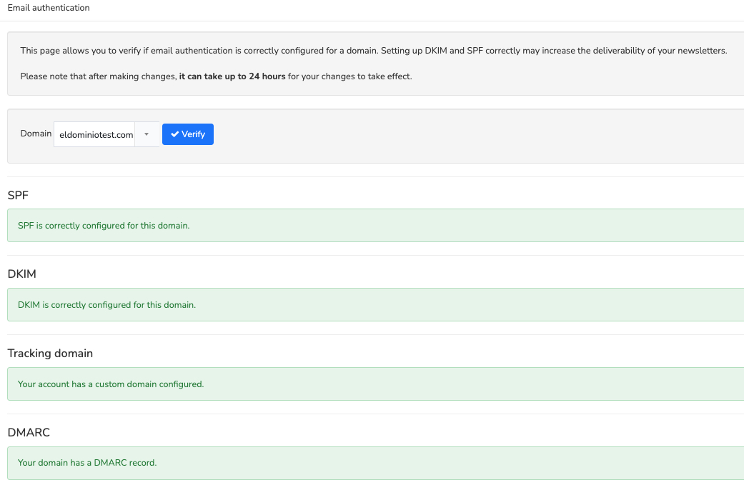 Once this is done, we will return to the MailRelay page and press "Check" again, and if we have done everything correctly, we should see the list as follows: